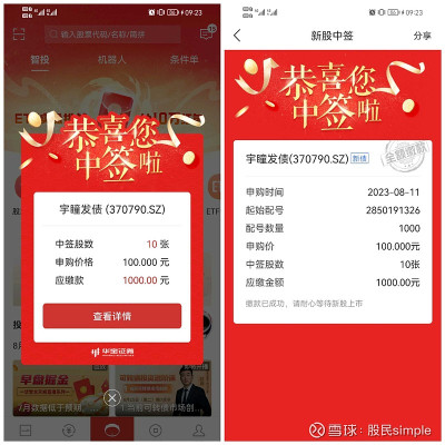 又中了一籤可轉債,宇瞳轉債,今年中籤的第8支可轉債,上周一剛中了銘利轉債,看來今年打新確實容易中籤了,打新的人確確實實少了。