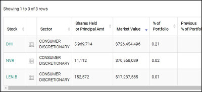 文件顯示,在二季度,伯克希爾新建倉3只房地產建築商股票:DR Horton公司是美國銷量最大的房屋建築商,伯克希爾對該公司一口氣加倉近600萬股,二季度末對該公司持股市值約7.26億美元;此外,伯克希爾加倉1.1萬股房屋建築商NVR,二季度末持倉市值爲7056.8萬美元;加倉房屋建築商Lennar近15.3萬股,二季度末持倉市值爲1723.8萬美元。