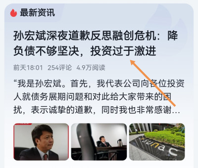 標題:近期,融創因爲孫宏斌道歉再次登上熱搜,孫老板反思過去兩年來企業出現大地震的最大原