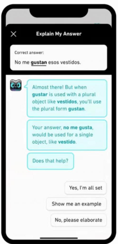今年第一季度,多鄰國在與 GPT-4 整合後推出新的訂閱 App Duolingo Max,提供 Roleplay ( 角色扮演 ) 和 Explain My Answer ( 解釋我的答案 ) 兩項新功能。