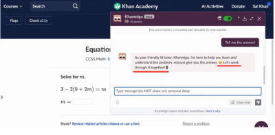 Khanmigo 作爲學習指南,幫助學生掌握各種學科和技能。它可以充當虛擬導師,解釋概念,提供提示並檢查答案。它還可以充當辯論夥伴,挑战學生對不同主題進行批判性和創造性思考。