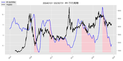 本輪PPI下行周期自2021年10月开始,已經持續了21個月,在我們的投研體系種,PPI是一個重要的經濟活躍度指標。PPI當月同比可以作爲上市公司盈利增速的代理變量來展示上市公司的盈利周期。