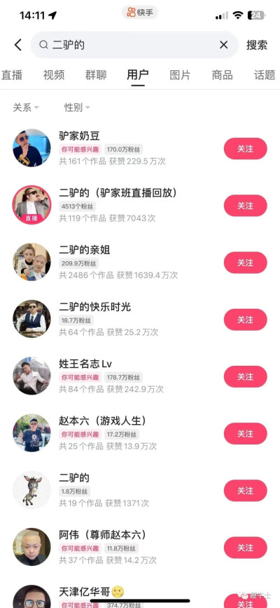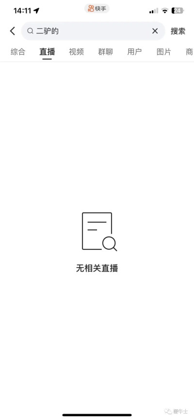 今日下午,鞭牛士在快手搜索「二驢的」並未顯示該主播账號,也無相關直播記錄,疑似被快手封禁。