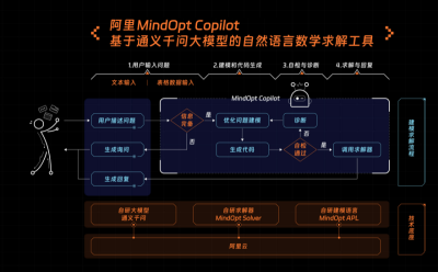 36氪獲悉,阿裏決策智能團隊研發一款大模型數學工具MindOpt Copilot,把大模型作爲建模助手,接收用戶以自然語言提出的優化問題,就可自動建模並調用求解器完成求解。MindOpt Copilot可用於解決餐飲、零售、物流貨運、生產制造等場景的資源配置和優化問題,將於近期上线阿裏雲並對外提供服務。