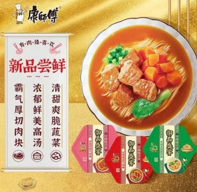 比如2022年,康師傅持續聚焦方便面的工藝和口味創新,先後推出迎合年輕人口味“燃魂拌面”、匯聚各地風味的“幹面薈”、聚焦新銳白領和新晉中產人群的“御品盛宴”系列等高端面產品,同時這是一個相對完整的產品矩陣,可以讓各個圈層的消費者都能找到自己喜歡的味道,喫上自己喜歡的方便面。