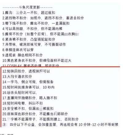 但近期,鬥魚悄悄更改了規則,更新後主播即使分被扣完了,該有的收益還是會有。即使因尺度太大被超管封禁,過一會兒就會被放出來。