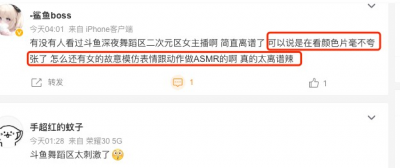 更是有用戶表示:「鬥魚深夜舞蹈區二次元區女主播啊 簡直離譜了 可以說是在看顏色片毫不誇張了……」
