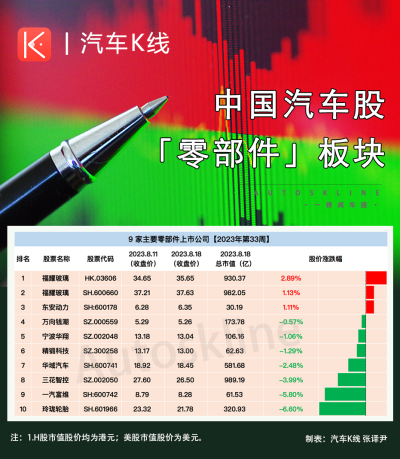 具體來看,福耀玻璃雙股領漲,其中,港股以2.89%的周漲幅領漲,總市值漲至930.37億港元;A股以1.13%的周漲幅位列板塊第2,市值漲至982.05億元;東安動力則以1.11%的周漲幅位列第3位。
