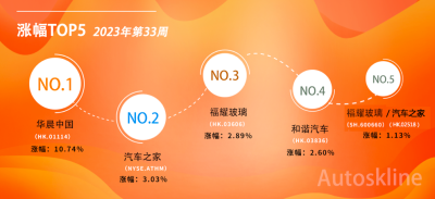 具體來看,華晨中國一周漲幅爲10.74%,總市值爲166.49億港元。