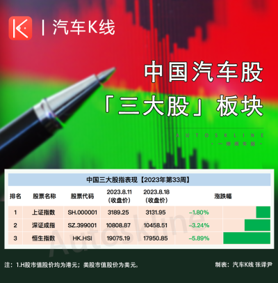 汽車股保持下挫,一周平均股價下跌5.16%,累計總市值跌至6.56萬億;