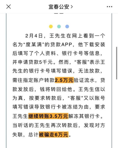 在黑貓投訴網站上,跟上述投訴情況相同的用戶不在少數,他們在小康金融申請貸款後,都以銀行卡填寫錯誤等理由,被要求繳納所謂的解凍金,少則3000元,多則上萬,而很多用戶在交完解凍金後仍然無法提現。近年來,多地警方在進行反詐知識教育時,都將“網絡貸款銀行卡被凍結需要繳納解凍費”作爲典型電信詐騙案例進行宣傳。宜春市公安局在其官方账號發布的一篇文章中提到:2月4日,王先生在“度某滿”的貸款APP申請貸款時,“客服”先後以銀行卡填寫錯誤無法放款、銀行卡填寫錯誤被凍結爲由,要求王先生向指定账戶轉账驗證流水和解凍,王先生轉账後對方消失,王先生被詐騙6萬元。長春市公安局反詐中心在反詐宣傳視頻中提到:通常來講,只有公檢法等國家機關,才能在法律規定的情形下,凍結銀行账戶內的資金,其余的單位和個人,包括人民銀行、貸款公司、上市企業,都沒有凍結銀行账戶的權限,而且這種凍結是一種法定的強制手段,不需要账戶开戶人的允許,也不受任何幹涉,更不存在交錢驗證身份就能解凍的說法。