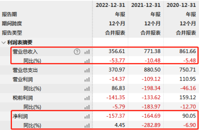 值得注意的是,近年來富力地產的房產銷售收入惡化也直接導致了營收縮水。Wind數據顯示,2020年-2022年,富力地產的營業收入分別爲861.66億元、771.38億元、356.61億元,同比增速分別爲-5.48%、-10.48%、-53.77%。