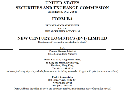 當地時間8月21日,新世紀儲運有限公司的控股公司New Century Logistics (BVI) Limited(以下簡稱:新世紀儲運)正式向美國證券交易委員會(SEC)遞交IPO申請,擬以NCEW爲股票代碼,申請納斯達克上市。披露顯示,該公司最早於今年4月28日向SEC遞交祕密申請。