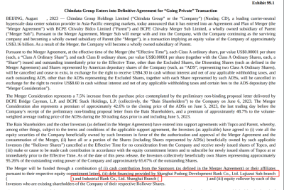 近日,貝恩資本宣布與秦淮數據(CD.O)達成私有化的最終協議,以每普通股4.3美元,每ADS股8.6美元的價格,收購秦淮數據所有已發行股份。交易預期在今年四季度或明年一季度完成,屆時秦淮數據將從納斯達克退市。