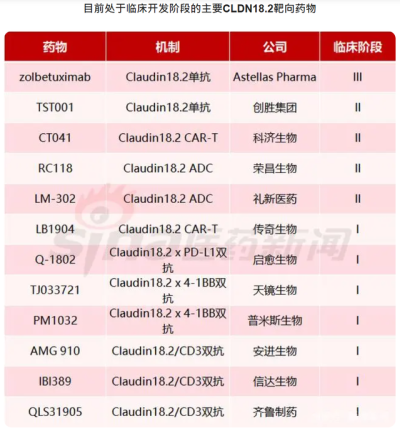 Claudin18.2是一種細胞連接蛋白,被研究者發現在胃癌、胰腺癌、食管癌、巢腺癌和肺癌等其他幾種類型腫瘤中高度表達,擁有較大藥物研究开發潛力。