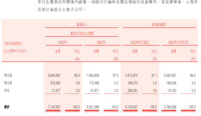 今年上半年,盛京銀行在東北區域實現營業收入68.44億元,佔營業收入的95.8%;華北區域實現營業收入2.78億元,佔營業收入的3.9%;其他區域實現營業收入0.22億元,佔營業收入的0.3%。東北區域的非流動資產總額爲56.14億元,佔非流動資產的91.1%;華北區域的非流動資產總額爲3.39億元,佔非流動資產的5.5%;其他區域的非流動資產總額爲2.07億元,佔非流動資產的3.4%。