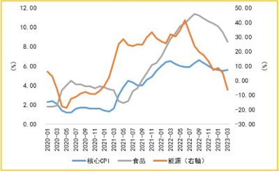 住房租金同比增速仍處高位,勞動力市場有所降溫。住房租金通脹季調環比+0.6%,較上月的0.7%略有下降;同比增速則回升0.1個百分點至8.3%,仍處於高位。值得關注的是3月美國勞動力市場有所降溫,雖然失業率由3.6%降至3.5%,但3月新增非農就業人數錄得23.6萬人,低於預期。並且,3月25日當周初次申請失業金人數大超預期,錄得24.6萬人,預期值僅爲19.6萬人。勞動力市場緊張緩解還反映在不含住房租金的服務分項上,其季調環比實現了零增長,同比增速由6.9%降至6.1%。其他服務來看,醫療護理服務季調環比-0.5%,維持環比負增;休闲服務環比持平(前值1.2%),運輸服務季調環比有所回升,由1.1%升至1.4%。