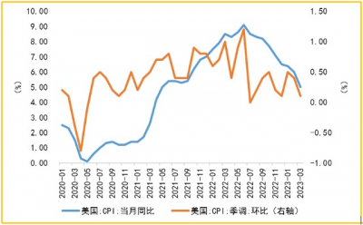 中國時間4月12日晚,美國勞工部發布3月美國CPI數據。3月美國CPI同比增速、季調環比增速均低於市場預期。2023年3月美國CPI同比增加5.0%(前值爲6.0%);核心CPI同比增加5.6%(前值爲5.5%);CPI季調環比增速爲0.1%,核心CPI季調環比增加0.4%。