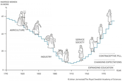 “女性的選擇通常受到婚姻和對家庭的責任的限制,這是她的分析和解釋模型的核心。”諾貝爾獎官方總結道,並展示了戈爾丁研究的幾大亮點: