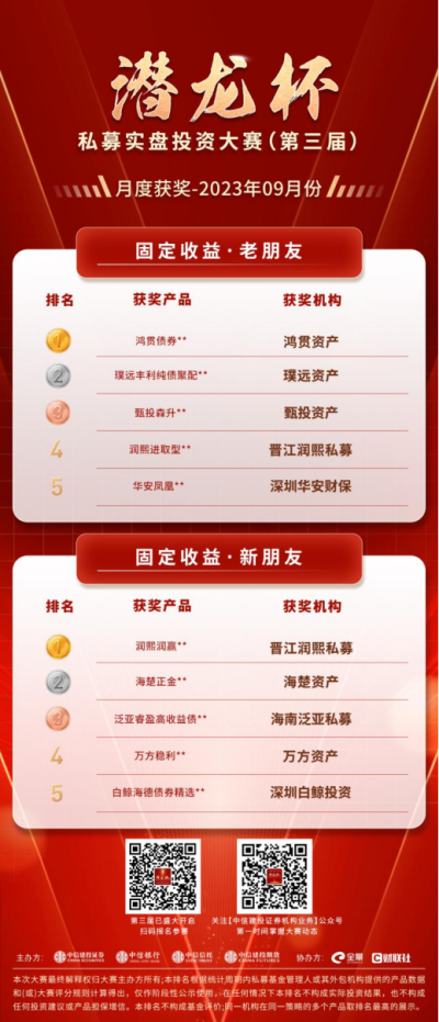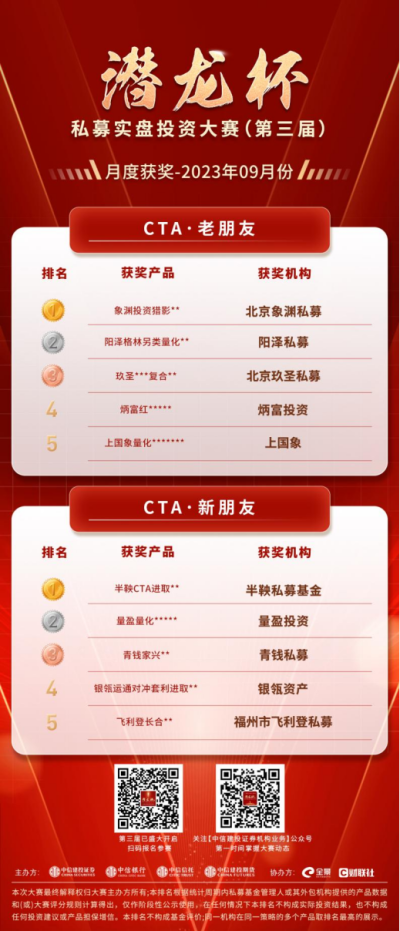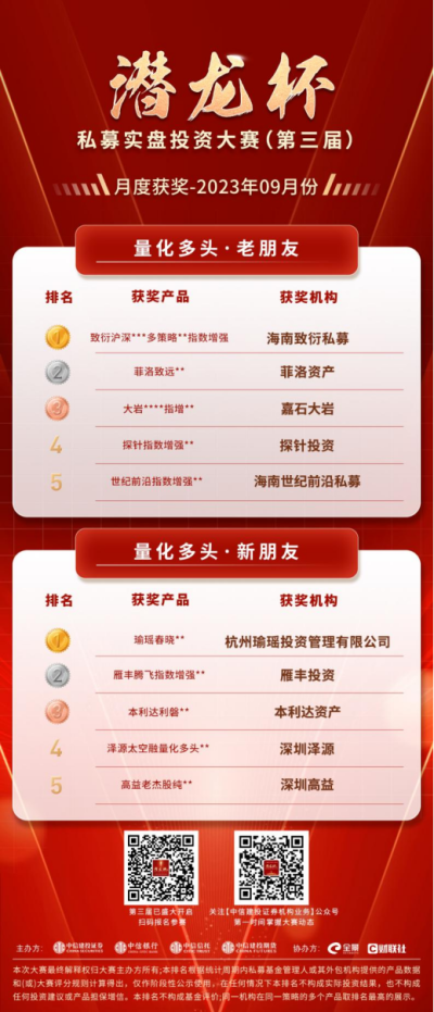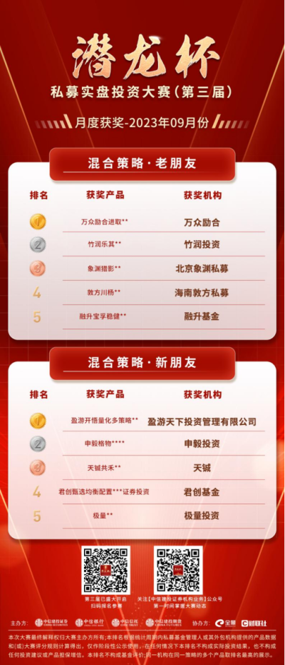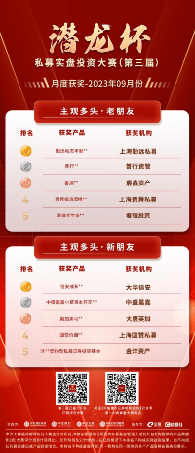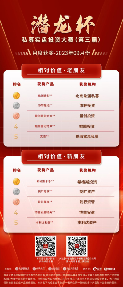 標題:爭流而上創佳績!中信建投證券第三屆“潛龍杯”私募大賽9月優勝私募出爐