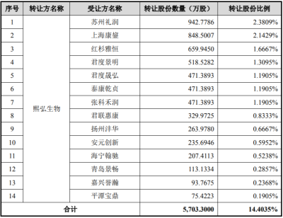 一年後,也就是2023年3月,熙華檢測進行第二次股權轉讓,熙弘生物以合計6.05億元的轉讓總價,將其持有的全部5703.30萬股股份轉讓給紅杉雅恆、蘇州禮潤、君聯惠康等14家外部機構。疑惑的是,熙弘生物此次的轉讓價格僅爲10.61元/股,對應公司整體估值爲42億元。