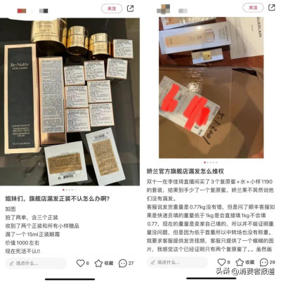 此外,《消費者報道》記者發現,在社交平台上有多名網友反饋其在雙十一購买的護膚品存在漏發小樣的問題。有消費者抱怨,其購买的商品漏發小樣,但客服否認出現少發的情況,從而影響了整個購买體驗。