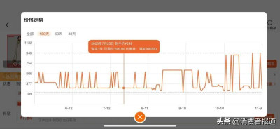 《消費者報道》記者通過慢慢买APP比價發現,近180天以來,該產品價格波動較大,到手價格在299元-600元之間,其日常售價大多爲299元。9月初,其最低到手價爲219元。