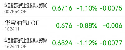 4月20日華寶油氣A162411基金淨值0.6824,漲跌幅-1.12%,4月20日華寶油氣C007844基金淨值0.6716,漲跌幅-1.10%。