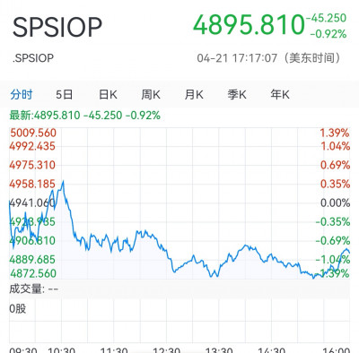 4月22日播報:4月21日晚,標普油氣开採指數spsiop4895.810,-45.250,-0.92%。