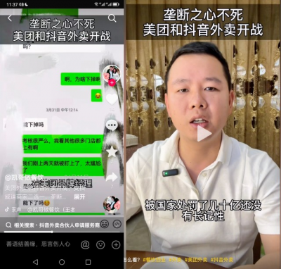 另一位四川的餐飲從業者遇到的情況也與之類似,稱在美團客戶經理一天到晚的強勢攻勢下,自己最終做了妥協。爲了保留抖音作爲獲客渠道的同時也能讓美團接受,只能提高了自家商品在抖音的售價。