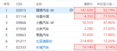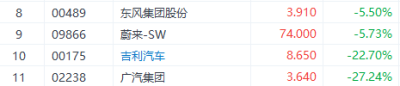 錄得跌幅的綜合車企股中,廣汽集團跌幅居首,達27.2%。作爲三大造車新勢力之一,蔚來年內錄得5.7%的跌幅,明顯落後理想汽車和小鵬汽車,市場對其長期以來的虧損及交付量存有顧慮,預計估值修復還需時日。