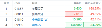 從港股市場來看,一些ChatGPT概念股表現出色,但阿裏、百度和京東等互聯網大廠表現則一般。美圖公司、新華文軒和小米集團年初至今漲幅居前,其中美圖公司漲幅超168.9%,在熊市氛圍濃厚的環境中,這些表現出衆的股票爲投資者提供了難得的結構性機遇。