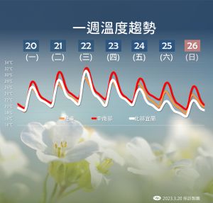 最冷的時間點則是週六晚上至下週日(3/26)清晨,北台灣僅攝氏16度,請民眾多留意快速多變的最新天氣資訊。