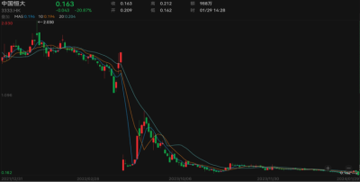 早間开盤後,中國恆大股價一度下挫超20%,隨後中國恆大、恆大汽車(00708.HK)、恆大物業(06666.HK)三家恆大系公司股票集體停牌。停牌前,中國恆大股價爲0.163港元/股,跌幅爲20.87%,創下上市最低點,目前市值爲22億元。