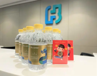 新光銀行「龍迎百福發財水」也會在春節期間先放置在分行的金庫裡,年後開工首個營業日2月15日各分行限量發送客戶,特別以「龍迎百福」祝賀字搭配紅色及金色為瓶身底色設計,加上元寶代表的財富象徵,希望在新的一年能帶給客戶與民眾滿滿的福氣外,也帶來財運及平安。
