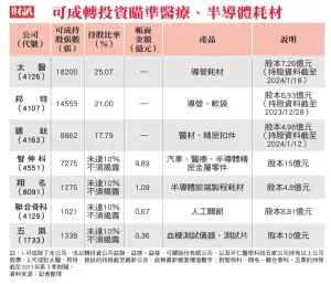 最後,太醫董事長鍾安婷持股6.49%,可成持股已達25%。邦特董事長李明忠是創辦人,兒子李宜勳任董事,台面上持股4.87%,加其他董事持股合計7.2%,可成則是21%。鐿鈦創辦人林寶彰任董事,兒子林俊男任總經理,董監持股共9.84%,據了解加計外圍約可控制3成,而可成台面上持股17.8%。