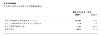 同時下降的,還有Keep的月活人數,按照2023年半年報數據,平均月活用戶已從2021年的3435.8萬人,降到了2954.9萬人。這也直接影響到了Keep的其他兩項收入。