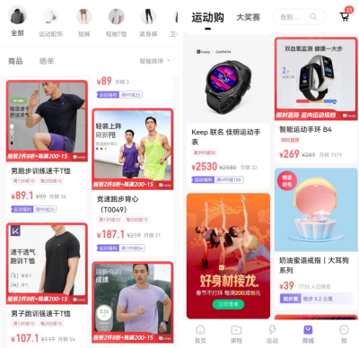 Keep跟進後,將這個模式進一步發展,只要用戶支付39元和59元不等的費用報名參與Keep發布的线上體育賽事,比如跑步、競走、騎行、跳繩等運動項目,在達成相應的運動目標後即可獲得Keep設計並頒發的實物獎牌,形式包含獎牌、徽章、手鏈等。極具匠心的設計和儀式感滿滿的獲取方式,吸引了大量用戶參與其中;在小紅書上,動輒就有人曬出自己收集到上百塊Keep獎牌炫耀,甚至在闲魚等二手平台,還有Keep獎牌求購交易的信息。