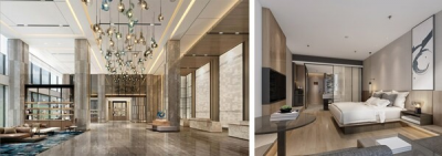 酒店的大堂創新布局,集前台、商務、社交、上網等多功能於一體,滿足賓客的多種需求,流暢的動线設計規劃爲賓客帶來高效的商旅體驗。酒店共有166間精致客房,房型包括標准房、高級房、套房和家庭房等。室內設計採用溫暖的大地色系,風格現代簡約,开放式空間設計讓房間更顯寬敞明亮。房間選用舒達牀墊,爲賓客提供舒適的睡眠體驗;室內燈光及色調都經過國際一流的專業設計團隊精心搭配,營造出溫暖、舒適的氛圍;台燈造型復古有特色,搭配寫意抽象的掛畫使房間在簡約之外更增添設計感。