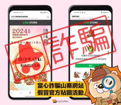 搭上媽祖繞境活動的話題熱潮,詐騙集團近期再度散播假冒官方名義舉辦的免費貼圖活動及貼圖網址下載連結,對此,事實查核機構 出面呼籲指出,這類藉由假冒的 LINE 帳號廣發的各式免費貼圖下載活動,是詐騙集團慣用的手法,並不是LINE官方舉辦的活動。提醒用戶看到這類要求點選領取貼圖或領取免費獎品的訊息時,千萬別誤以為真,冒然地點擊領取按鈕與下載連結。同時,也不要隨手轉傳以遏止假訊息被持續散佈。