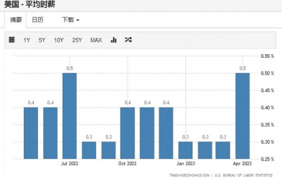 上周公布的非農報告顯示,美國4月就業增長意外加速,企業增加了25.3萬個工作崗位,而失業率降至3.4%,爲近53年來的最低水平。消費需求依然強勁,創造就業機會的速度進一步加快,這表明在銀行業動蕩、利率上升和高通脹的情況下,就業市場具有韌性。