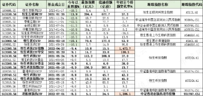另一張“綠油油”的表格中,清一色的是港股相關ETF,且均爲互聯網或醫藥ETF,恆生互聯網ETF(159688.SZ)表現最慘,今年來跌幅達18%。 此外,規模較大的恆生互聯網ETF(513330.SH)、中概互聯網ETF(513050.SH)是衆多“丐幫”子弟的聚集地,分別下跌14%、11%,還有7只ETF跌超10%,真可謂是悽悽慘慘戚戚!