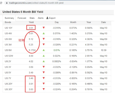 上面美債收益率體現的就是倒掛的現象,我們講過了,是指短期美國國債的收益率高於長期美國國債的收益率的反常現象,通常意味着市場對未來經濟增長和通脹的預期低於當前的水平。這裏不再贅述
