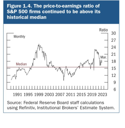 在此期間,相對於預期收益的股票價格指標【也就是市盈率】波動較大,高於歷史中值。