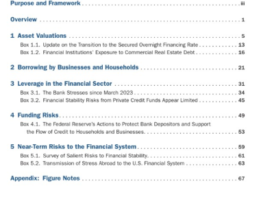 近日美聯儲發布了新一期的金融穩定半年報,我們花點時間看下,報告分爲5部分組成,分別是1資產估值、2企業和家庭借款、3金融部門的槓杆、4資金風險、5金融系統的近期風險。