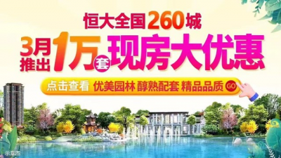 進入3月,恆大繼續加大營銷力度,宣布推出1萬套現房大優惠,涉及260個城市住宅商鋪等物業。