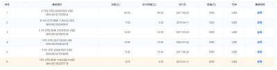 據企業預警通數據顯示,目前中國恆大直接發行的存續美元債共6只,債券總額95.75億美元,以人民幣計約658.26億元。其中,票面利率最高12%,最低7.5%;到期年限最長爲8年,最短爲4年。
