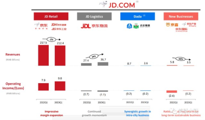 標題:JD京東23Q1財報跟蹤,零售負增長,增量全來自物流