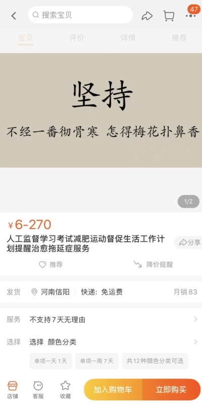 很多人可能想不到,“督促自律”這么小衆的需求,也能在淘寶成爲一門生意。“作死雜貨鋪”就是一個專門幫客戶制訂計劃,按規定時間提醒客戶完成待辦事項的店鋪。店主朱河存已經做了8年的“自律監督員”,是淘寶上做“監督員”最久的店鋪。