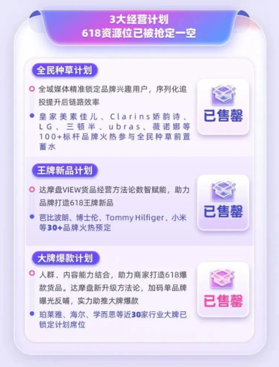 阿裏媽媽達摩盤在618期間,僅有50席位可以享受到達摩盤的科學策略與品牌1v1共建經營權益,也早已被100%鎖定。